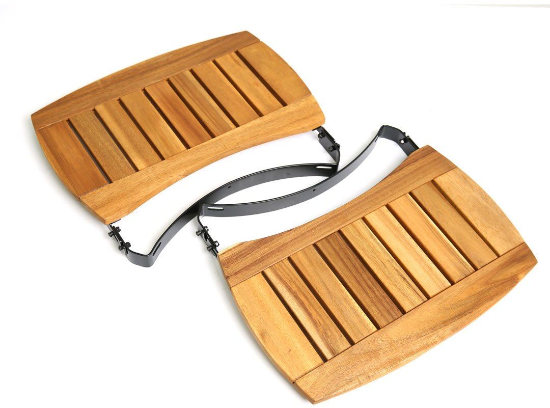 Les tablettes latérales en acacia Big Green Egg sont livrées avec des étriers de montage.
