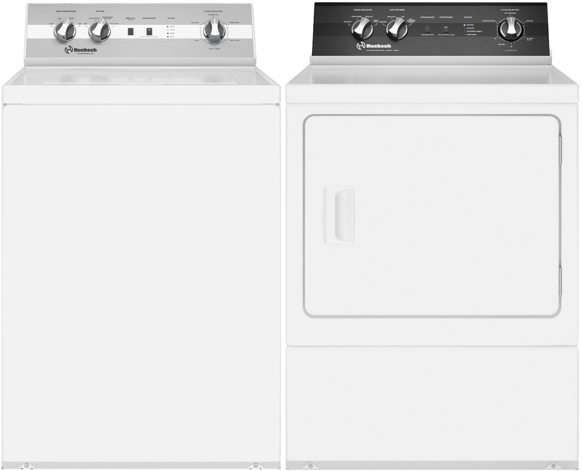 Ensemble de buanderie à chargement vertical Huebsch® avec une laveuse d'une capacité de 3,2 pi³ et une sécheuse électrique d'une capacité de 7,0 pi³.Read More
