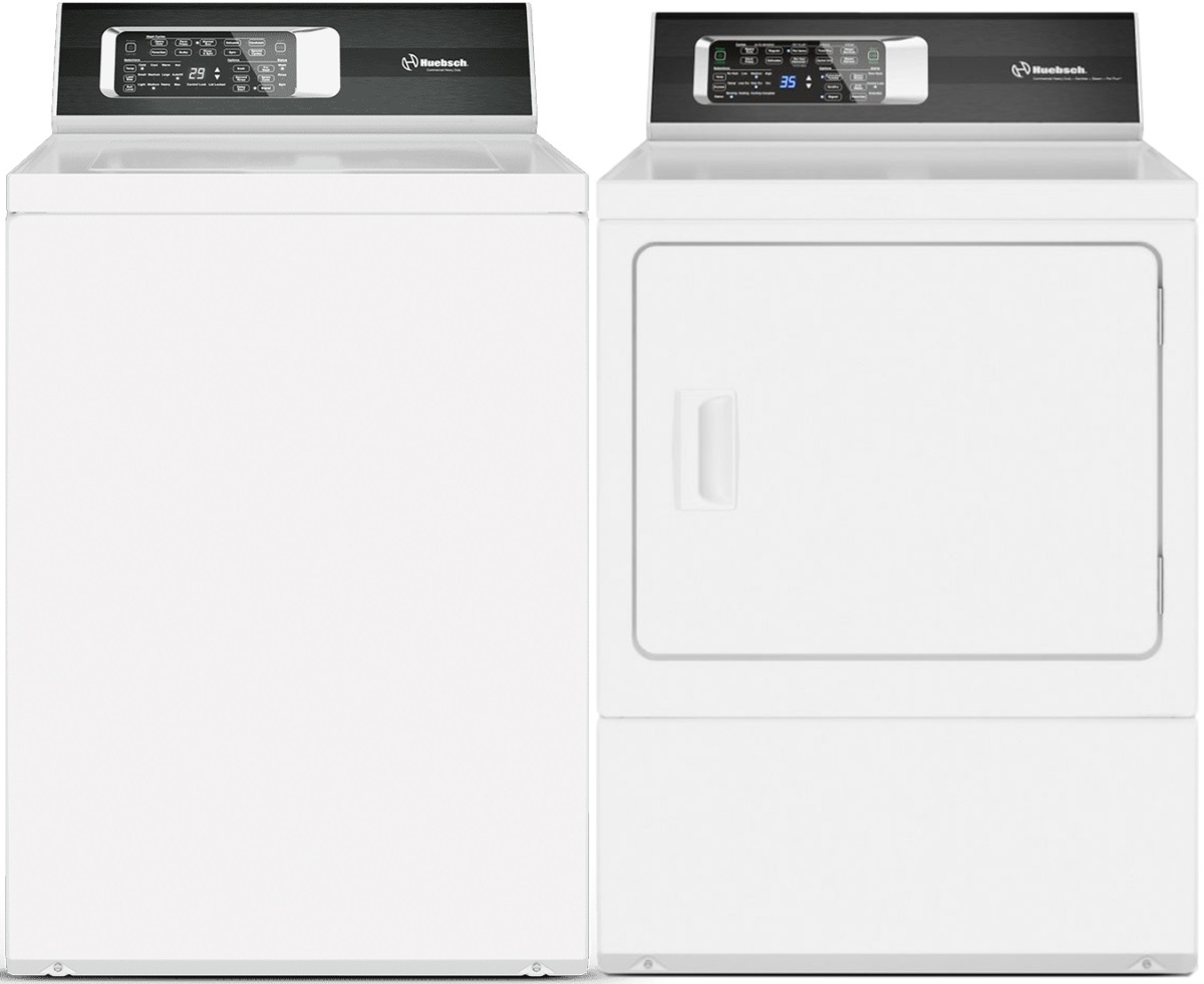 Ensemble de buanderie à chargement vertical Huebsch® avec une laveuse d'une capacité de 3,2 pi³ et une sécheuse électrique d'une capacité de 7,0 pi³Read More