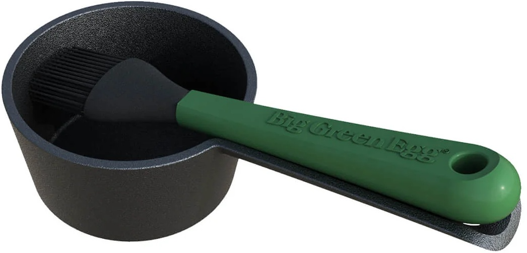 La casserole à sauce en fonte vous permet de faire fondre du beurre ou de réchauffer facilement et rapidement vos sauces et marinades sur la grille du Big Green Egg. Le pinceau à badigeonner en silicone s’emboite parfaitement dans la poignée de la casserole afin de ne pas risquer de faire de tâches sur la nappe. N’oubliez pas de le retirer avant de poser la casserole dans l’Oeuf!Read More