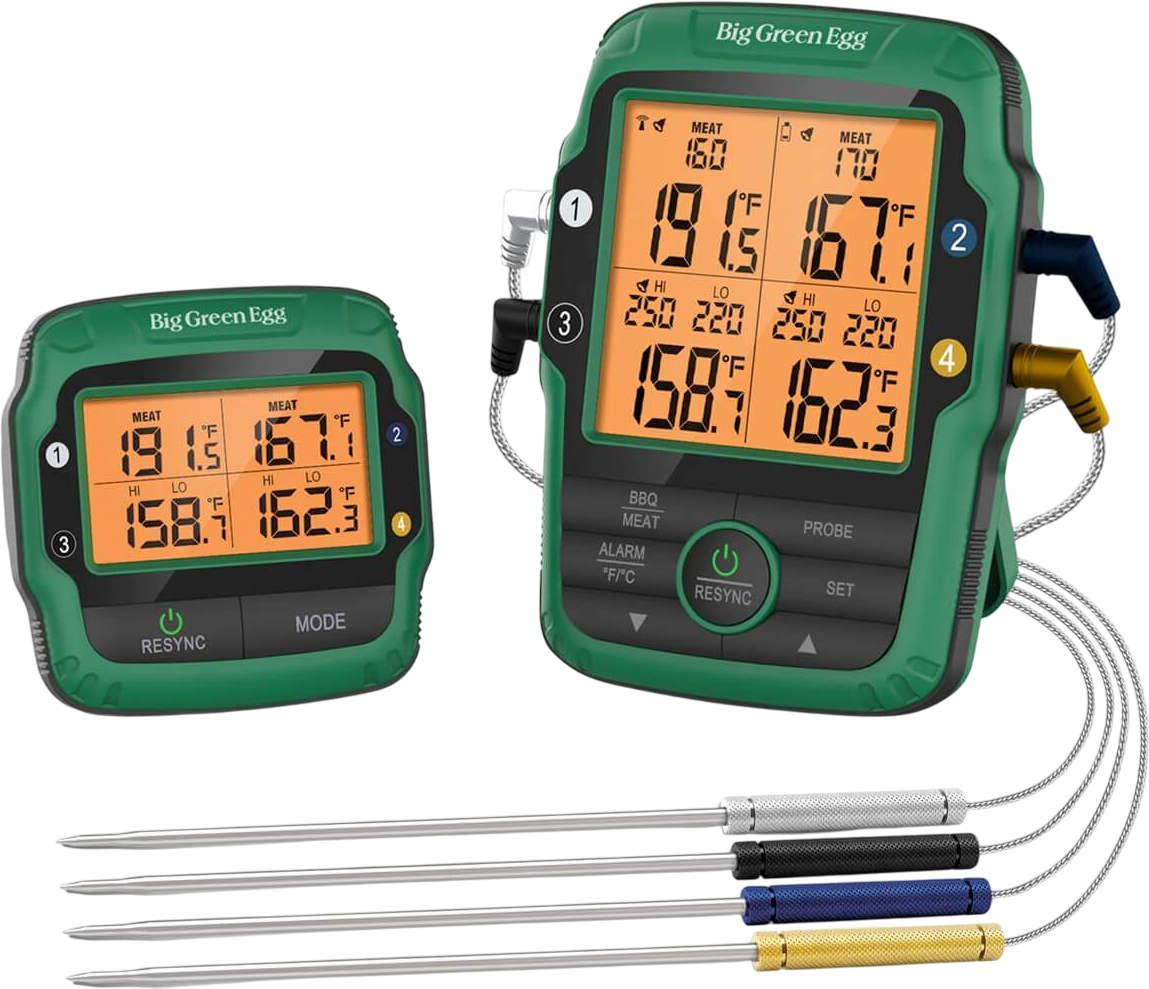 Le thermomètre à viande à 4 sondes est un thermomètre alimentaire programmable à radiofréquence. radiofréquence programmable. Il permet de contrôler à distance contrôler à distance la température des aliments et la température à l'intérieur de votre EGG depuis n'importe quel endroit de votre maison.Read More